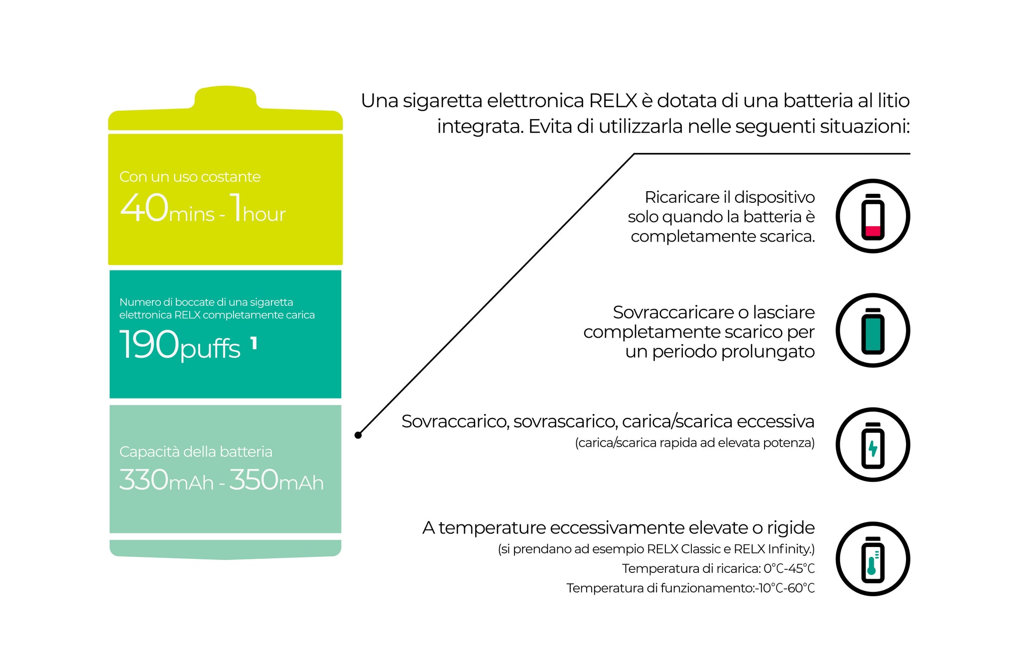 L'ottimizzazione della durata della batteria del dispositivo RELX è un fattore importante per ottenere il massimo dal dispositivo.